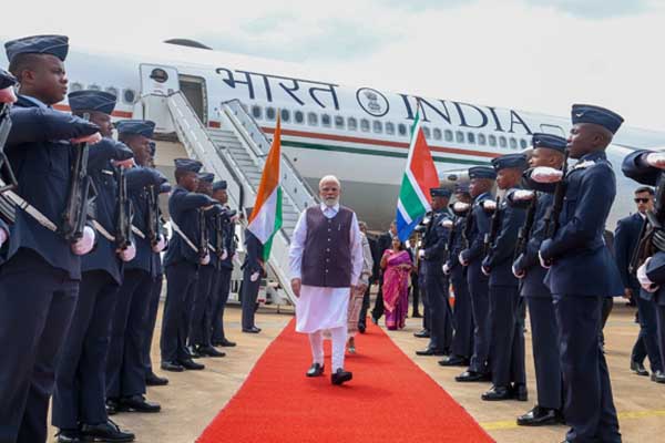 ದಕ್ಷಿಣ ಆಫ್ರಿಕಾಗೆ ಬಂದಿಳಿದ ಪ್ರಧಾನಿ ಮೋದಿ: ಏರ್​ಪೋರ್ಟ್​ನಲ್ಲಿ ಸಿಕ್ಕಿತು ಅದ್ದೂರಿ ಸ್ವಾಗತ!