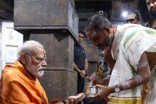 ಈ ವೇಳೆ ಪ್ರಧಾನಿ ನರೇಂದ್ರ ಮೋದಿ ಅವರು ಹಸುವಿನ ಹಾಲು, ಮೊಸರು, ತುಪ್ಪ, ಜೇನುತುಪ್ಪ ಮತ್ತು ಸಕ್ಕರೆಯ ಪವಿತ್ರ ಮಿಶ್ರಣವಾದ ಪಂಚಾಮೃತ ಬಳಸಿ ದೇವರಿಗೆ ರುದ್ರಾಭಿಷೇಕ ನೆರವೇರಿಸಿದರು. ನಂತರ ದೇವಾಲಯದಲ್ಲಿ ಸ್ವಲ್ಪ ಸಮಯ ಧ್ಯಾನ ಮಾಡಿ ಪ್ರಾರ್ಥನೆ ಸಲ್ಲಿಸಿದರು.