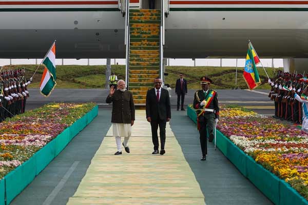 ಇಥಿಯೋಪಿಯಾ ಪ್ರಧಾನಿ ಅಬಿ ಅಹ್ಮದ್ ಅಲಿ ಅವರ ಆಹ್ವಾನದ ಮೇರೆಗೆ ಪ್ರಧಾನಿ ನರೇಂದ್ರ ಮೋದಿ ಅವರು ಎರಡು ದಿನಗಳ ಇಥಿಯೋಪಿಯಾ ಭೇಟಿಗಾಗಿ ಇಂದು ಅಡಿಸ್ ಅಬಾಬಾಗೆ ಬಂದಿಳಿದರು.