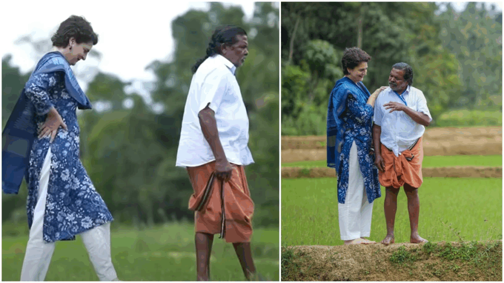 ಈ ವೇಳೆ ಪದ್ಮಶ್ರೀ ಪ್ರಶಸ್ತಿ ಪುರಸ್ಕೃತ ಚೆರುವಾಯಲ್ ರಾಮನ್ ಅವರ ಮನೆಯಲ್ಲಿ ಸುಮಾರು ಎರಡೂವರೆ ಗಂಟೆಗಳ ಕಾಲ ಕಳೆದಿದ್ದಾರೆ. ಬೀಜಗಳನ್ನು ಸಂರಕ್ಷಿಸಲಾಗಿರುವ ರೈತನ ಭತ್ತದ ಗದ್ದೆಗಳ ಮೂಲಕ ನಡೆದು ಅವರ ವಿಶಿಷ್ಟ ಕೃಷಿ ವಿಧಾನಗಳ ಬಗ್ಗೆ ತಿಳಿದುಕೊಂಡರು. ಜೊತೆಗೆ ರಾಮನ್ ಪ್ರಿಯಾಂಕಾಗೆ ಜನಪದ ಗೀತೆಗಳನ್ನು ಹೇಳಿಕೊಟ್ಟಿದ್ದಾರೆ.