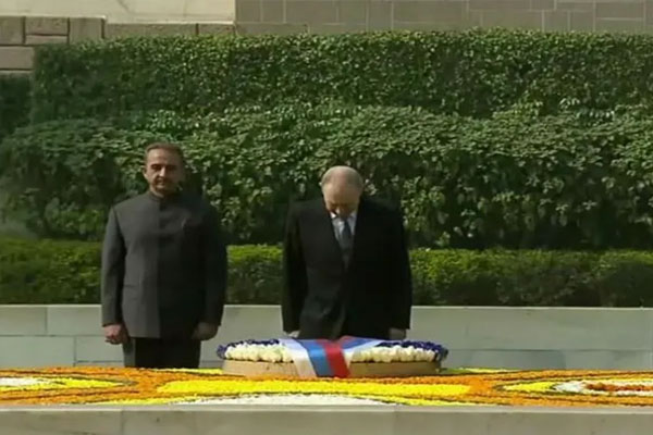 ರಷ್ಯಾ ಅಧ್ಯಕ್ಷ ವ್ಲಾಡಿಮಿರ್ ಪುಟಿನ್ ಅವರ ಭಾರತ ಪ್ರವಾಸ ಇಂದು ಆತ್ಮೀಯ ಹಾಗೂ ಗೌರವಯುತ ವಾತಾವರಣದಲ್ಲಿ ಮುಂದುವರಿಯಿತು. ಅಧಿಕೃತ ಸ್ವಾಗತ ಸಮಾರಂಭ ಮುಗಿದ ಕೆಲವೇ ಕ್ಷಣಗಳಲ್ಲಿ ಅವರು ನೇರವಾಗಿ ರಾಜ್‌ಘಾಟ್ ಕಡೆಗೆ ಪ್ರಯಾಣ ಮಾಡಿ, ಮಹಾತ್ಮಾ ಗಾಂಧೀಜಿ ಸಮಾಧಿಗೆ ನಮನ ಸಲ್ಲಿಸಿದರು. ಶಾಂತಿ ಮತ್ತು ಅಹಿಂಸೆಯ ಚಿಹ್ನೆಯಾಗಿರುವ ಗಾಂಧೀಜಿ ಸ್ಮಾರಕದಲ್ಲಿ ಪುಟಿನ್ ಅವರ ಭೇಟಿ ಎರಡೂ ರಾಷ್ಟ್ರಗಳ ಐತಿಹಾಸಿಕ ಬಾಂಧವ್ಯಕ್ಕೆ ಮತ್ತೊಂದು ಸಂಕೇತವಾಗಿ ಕಾಣಿಸಿತು.