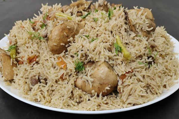 ರುಚಿಗೆ ತಕ್ಕಷ್ಟು ಉಪ್ಪು ಸರಿಪಡಿಸಿ, ಕುಕ್ಕರ್ ಮುಚ್ಚಳ ಮುಚ್ಚಿ 2 ಸೀಟಿ ಬರುವವರೆಗೆ ಬೇಯಿಸಿ. ಕುಕ್ಕರ್ ತಣ್ಣಗಾದ ಮೇಲೆ ಮುಚ್ಚಳ ತೆಗೆದು ಅದಕ್ಕೆ ಸ್ವಲ್ಪ ನಿಂಬೆ ರಸ ಚಿಮುಕಿಸಿದರೆ ಘಮಘಮಿಸುವ ಚಿಕನ್ ಪಲಾವ್ ಸವಿಯಲು ಸಿದ್ಧ!