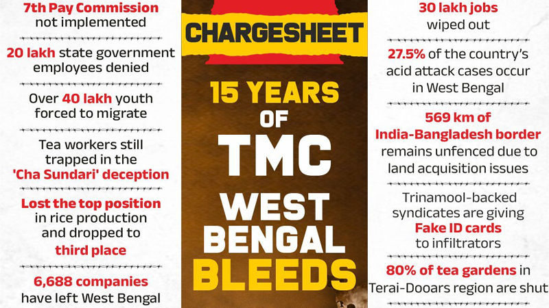 ಬಂಗಾಳವು ಕಳೆದ 15 ವರ್ಷಗಳಿಂದ ಭಯ, ಭ್ರಷ್ಟಾಚಾರ ಮತ್ತು ತಾರತಮ್ಯದ ರಾಜಕೀಯದ ಕೂಪವಾಗಿದೆ ಎಂದು ಟೀಕಿಸಿದರು.