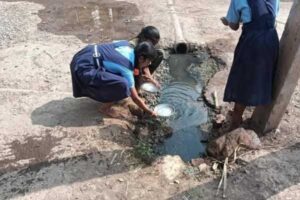 ಚರಂಡಿ ನೀರಿನಲ್ಲಿ ತಟ್ಟೆ ತೊಳೆದ ಶಾಲಾ ಮಕ್ಕಳು: ಮುಖ್ಯ ಶಿಕ್ಷಕನಿಗೆ ಬಂತು ನೊಟೀಸ್!
