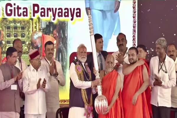ಪ್ರಧಾನ ಮಂತ್ರಿ ನರೇಂದ್ರ ಮೋದಿ ಉಡುಪಿ ಶ್ರೀಕೃಷ್ಣ ಮಠಕ್ಕೆ ಭೇಟಿ ನೀಡಿ ಕಡೆಗೋಲು ಕೃಷ್ಣನ ದರುಶನ ಪಡೆದಿದ್ದಾರೆ. ದೇವರ ದರುಶನದ ಬಳಿಕ ಹಲವು ಧಾರ್ಮಿಕ ಕಾರ್ಯಕ್ರಮಗಳಲ್ಲಿ ಪಾಲ್ಗೊಂಡಿದ್ದಾರೆ. ಮೋದಿಗೆ ಭಾರತ ಭಾಗ್ಯವಿಧಾತ ಬಿರುದು ನೀಡಿ ಸನ್ಮಾನ  ಮಾಡಲಾಗಿದೆ. ಪ್ರಧಾನಿ ಮೋದಿಗೆ ಬೆಳ್ಳಿಯ ಕಡೆಗೋಲನ್ನು ಕೊಡುಗೆಯಾಗಿ ನೀಡಲಾಗಿದೆ.