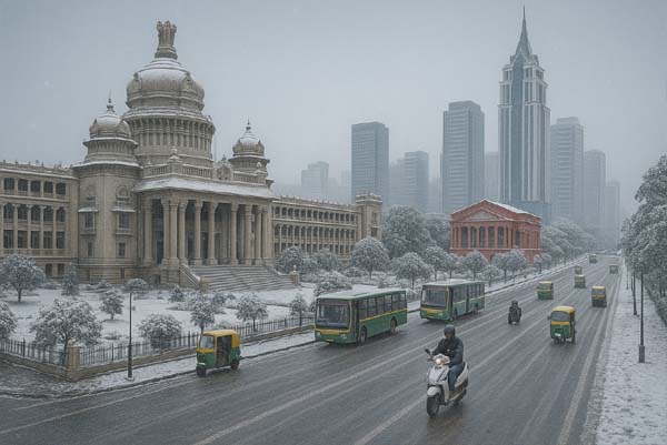 ರಾಜಧಾನಿ ಬೆಂಗಳೂರಿನಲ್ಲಿ ದಾಖಲೆ ಚಳಿ ಇದೆ, ಜನ ಬೆಂಗಳೂರನ್ನು ಲಂಡನ್ ಅಂತಿದ್ದಾರೆ. ಮಧ್ಯಾಹ್ನ ಮೂರು ಗಂಟೆಯಾಗಿದ್ರೂ ಬೆಂಗಳೂರು ಬೆಳಗಿನ ಜಾವ ಆರು ಗಂಟೆ ಫೀಲ್ ಕೊಡ್ತಿದೆ. ಜಿಟಿಜಿಟಿ ಮಂಜು, ಖಾಲಿ ರಸ್ತೆಗಳು ಬೆಂಗಳೂರಿನ ಅಂದವನ್ನು ಇನ್ನಷ್ಟು ಹೆಚ್ಚಿಸಿದೆ.