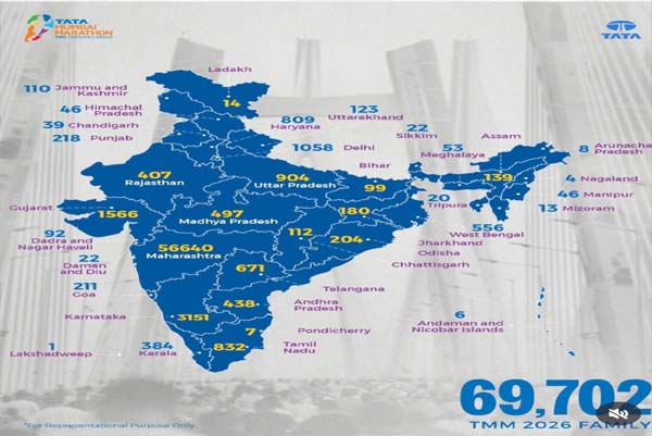 ದೇಶದ ಪ್ರತಿಯೊಂದು ಮೂಲೆಯಿಂದ ಭಾಗವಹಿಸುವವರನ್ನು ಆಕರ್ಷಿಸುವ ಟಾಟಾ ಮುಂಬೈ ಮ್ಯಾರಥಾನ್ 2026ರ ಆವೃತ್ತಿಯಲ್ಲಿ ಕರ್ನಾಟಕದ ಬಲಿಷ್ಠ ಪಾಲ್ಗೊಳ್ಳುವಿಕೆ, ಭಾರತದಲ್ಲಿನ ಪ್ರಮುಖ ಓಟದ ರಾಜ್ಯಗಳ ಪೈಕಿ ಒಂದಾಗಿ ತನ್ನ ಸ್ಥಾನವನ್ನು ಮತ್ತೊಮ್ಮೆ ದೃಢಪಡಿಸಿದ್ದು, ದೇಶದ ಮ್ಯಾರಥಾನ್ ಸಂಸ್ಕೃತಿಗೆ ಮಹತ್ವದ ಕೊಡುಗೆ ನೀಡಿದೆ.