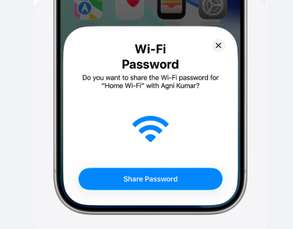 ‘ಹಂಚಿಕೊಳ್ಳಿ’ (Share) ಟ್ಯಾಪ್ ಮಾಡಿ. ತಕ್ಷಣವೇ ಇನ್ನೊಂದು ಸಾಧನವು ವೈ-ಫೈಗೆ ಸಂಪರ್ಕಗೊಳ್ಳುತ್ತದೆ.