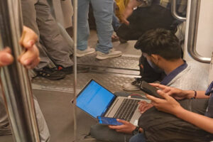 ಮೆಟ್ರೋ ನಲ್ಲೂ ಸುಮ್ನೆ ಕೂರೋಕೆ ಬಿಡಲ್ಲ ಈ ಬಾಸ್: ಕೆಲಸದ ಟೆನ್ಶನ್, ಲ್ಯಾಪ್ಟಾಪ್ ತೆರೆದು ನೆಲದ ಮೇಲೆ ಕೂತ ಯುವಕ