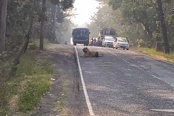 ಮಹಾರಾಷ್ಟ್ರದ ಚಂದ್ರಾಪುರ- ಮುಲ್ ಹೆದ್ದಾರಿಯಲ್ಲಿ ಹುಲಿಯೊಂದು ಮಲಗಿ ವಿಶ್ರಾಂತಿ ತೆಗೆದುಕೊಳ್ಳುತ್ತಿತ್ತು.ಇದರಿಂದ , ಚಂದ್ರಾಪುರದಿಂದ ಮುಲ್ಗೆ ಮತ್ತು ಮುಲ್ನಿಂದ ಚಂದ್ರಾಪುರಕ್ಕೆ ಹೋಗುವ ವಾಹನಗಳು ಎರಡೂ ಬದಿಗಳಲ್ಲಿ ಬ್ಲಾಕ್ ಆದ ಘಟನೆ ನಡೆದಿದೆ.