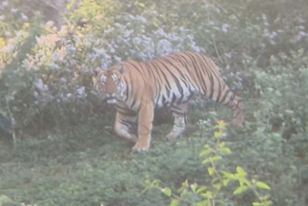 ಮಲೆ ಮಹದೇಶ್ವರ ವನ್ಯಧಾಮದ ಮೀಣ್ಯ ಸಮೀಪ ಹುಲಿ ಪ್ರತ್ಯಕ್ಷ, ಆತಂಕದಲ್ಲಿ ಜನ