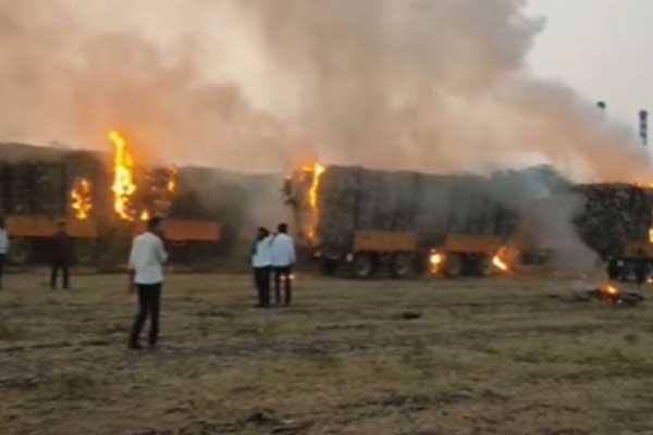 ಪ್ರತಿ ಟನ್ ಕಬ್ಬಿಗೆ 3,500 ರೂ. ಘೋಷಿಸುವಂತೆ ಆಗ್ರಹಿಸಿ ಕಬ್ಬು ಬೆಳೆಗಾರರು ನಡೆಸಿರುವ ಹೋರಾಟ ಮತ್ತಷ್ಟು ತೀವ್ರ ಸ್ವರೂಪಕ್ಕೆ ತಿರುಗಿದೆ. ಜಿಲ್ಲೆಯ ಮುಧೋಳ ತಾಲೂಕಿನ ಸೈದಾಪುರ ಗ್ರಾಮದ ಸಮೀರವಾಡಿಯ ಗೋದಾವರಿ ಕಾರ್ಖಾನೆ ಬಳಿ ಸಾಲಾಗಿ ನಿಲ್ಲಿಸಿದ್ದ 100ಕ್ಕೂ ಹೆಚ್ಚು ಟ್ರ್ಯಾಕ್ಟರ್ ಟ್ರಾಲಿಗಳಿಗೆ ಬೆಂಕಿ ಹಚ್ಚಿ ಆಕ್ರೋಶ ವ್ಯಕ್ತಪಡಿಸಿದ್ದಾರೆ.