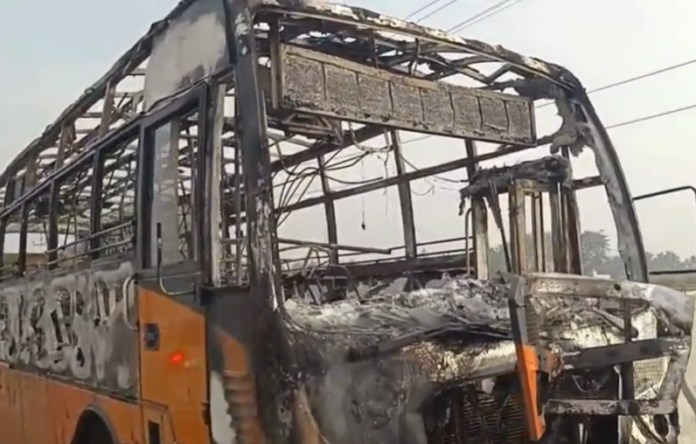 ಕೇರಳ ರಾಜ್ಯ ಸಾರಿಗೆ ಸಂಸ್ಥೆಯ ಬಸ್ಸೊಂದು ಚಲಿಸುತ್ತಿರುವಾಗಲೇ ಹಠಾತ್ ಬೆಂಕಿ ಕಾಣಿಸಿಕೊಂಡು ಸಂಪೂರ್ಣ ಸುಟ್ಟು ಭಸ್ಮವಾಗಿರುವ ಘಟನೆ ಮೈಸೂರಿನ ನಂಜನಗೂಡು ತಾಲೂಕಿನ ಹೊಸಳ್ಳಿ ಗೇಟ್ ಬಳಿ ನಡೆದಿದೆ. ಚಾಲಕನ ಸಮಯಪ್ರಜ್ಞೆಯಿಂದಾಗಿ ಬಸ್ಸಿನಲ್ಲಿದ್ದ 40ಕ್ಕೂ ಹೆಚ್ಚು ಪ್ರಯಾಣಿಕರು ಯಾವುದೇ ಅನಾಹುತವಿಲ್ಲದೆ ಪ್ರಾಣಾಪಾಯದಿಂದ ಪಾರಾಗಿದ್ದಾರೆ.