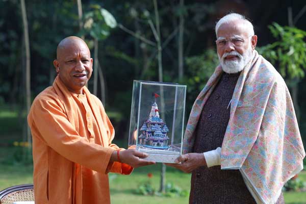 ಭೇಟಿಯ ಸಂದರ್ಭ ಯೋಗಿ ಪ್ರಧಾನಿ ಮೋದಿಗೆ ಮೀನಕರಿ ಕಲೆಯ ಮೂಲಕ ಸಿದ್ಧಪಡಿಸಿದ ರಾಮಮಂದಿರದ ಪ್ರತಿಕೃತಿಯನ್ನು ಉಡುಗೊರೆಯಾಗಿ ನೀಡಿದ್ದಾರೆ. ಈ ಪ್ರತಿಕೃತಿಯನ್ನು ಕುಂಜ್ ಬಿಹಾರಿ ಜಿ ತಯಾರಿಸಿದ್ದಾರೆ.