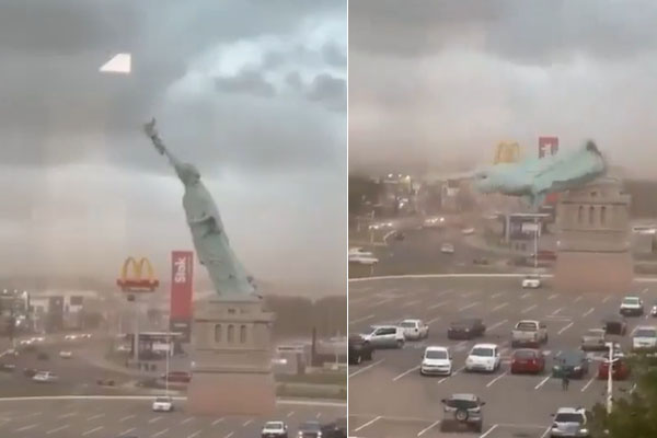 ದಕ್ಷಿಣ ಬ್ರೆಜಿಲ್‌ನ ಗುವಾಯ್ಬಾ ನಗರದಲ್ಲಿ ಅಪ್ಪಳಿಸಿದ ಭಾರೀ ಚಂಡಮಾರುತ ಮತ್ತು ಭೀಕರ ಗಾಳಿಯ ಹೊಡೆತಕ್ಕೆ ಲಿಬರ್ಟಿ ಪ್ರತಿಮೆಯ ಪ್ರತಿಕೃತಿಯೊಂದು ನೆಲಕ್ಕುರುಳಿದ್ದು, ಈ ಘಟನೆಯ ವಿಡಿಯೋ ಸಾಮಾಜಿಕ ಜಾಲತಾಣಗಳಲ್ಲಿ ವ್ಯಾಪಕವಾಗಿ ವೈರಲ್ ಆಗಿದೆ.