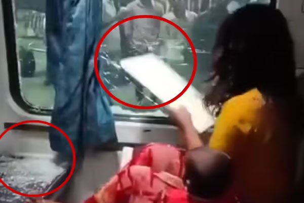 ವೈರಲ್ ವಿಡಿಯೋದಲ್ಲಿ ಮಹಿಳೆ ತನ್ನ ಪಕ್ಕದಲ್ಲಿ ಕೂತಿರುವ ಚಿಕ್ಕ ಮಗುವಿನ ಮುಂದೆ ಟ್ರೇನ ಸಹಾಯದಿಂದ ರೈಲು ಕಿಟಕಿಗೆ ಹಲವಾರು ಬಾರಿ ಹೊಡೆದು ಅದನ್ನು ಒಡೆದುಹಾಕಿದ್ದಾಳೆ.