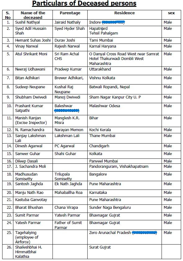 ಈ ದಾಳಿಯಲ್ಲಿ ಪ್ರಾಣಬಿಟ್ಟ 26 ಮಂದಿ ಯಾರು? ಎಲ್ಲಿಯವರು? ಇಲ್ಲಿದೆ ಡೀಟೇಲ್ಸ್..