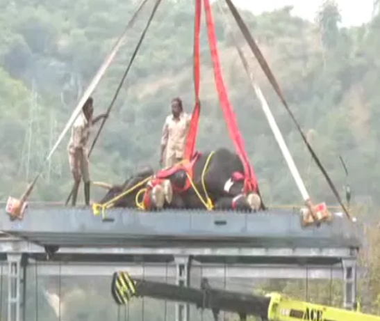 ಆನೆ ಪ್ರಜ್ಞೆ ಕಳೆದುಕೊಂಡ ಬಳಿಕ, ಇಲಾಖೆಯ ಸಿಬ್ಬಂದಿ ಹೈಡ್ರಾಲಿಕ್ ಕ್ರೇನ್ ಮತ್ತು ಹಗ್ಗಗಳನ್ನು ಬಳಸಿ, ಕಂಟೇನರ್ ಮೇಲೆ ಇರಿಸಿ ಆನೆಯನ್ನು ಅತ್ಯಂತ ಎಚ್ಚರಿಕೆಯಿಂದ ಕಾಲುವೆಯಿಂದ ಮೇಲೆತ್ತಿದರು. ರಕ್ಷಣೆಯಾದ ನಂತರ, ಆನೆಯನ್ನು ಲಾರಿ ಮೂಲಕ ಸುರಕ್ಷಿತ ಸ್ಥಳಕ್ಕೆ ಸ್ಥಳಾಂತರಿಸಲಾಯಿತು.