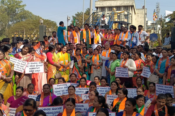 ಇಲ್ಲಿನ ಬಿ. ಆರ್. ಅಂಬೇಡ್ಕರ್ ವೃತ್ತದಲ್ಲಿ ವಿಧಾನ ಸಭೆ ವಿರೋಧಪಕ್ಷದ ನಾಯಕ ಆರ್. ಅಶೋಕ್ ಹಾಗೂ ವಿಧಾನ ಪರಿಷತ್ ವಿರೋಧ ಪಕ್ಷದ ನಾಯಕ ಚಲವಾದಿ ನಾರಾಯಣ ಸ್ವಾಮಿ ಅವರ ನೇತೃತ್ವದಲ್ಲಿದಲ್ಲಿ ಪ್ರತಿಭಟನೆ ನಡೆಯಿತು. ಈ ವೇಳೆ ರಾಜ್ಯ ಸರ್ಕಾರ ಹಾಗೂ ಪೊಲೀಸ್ ಇಲಾಖೆಯ ವಿರುದ್ಧ ಘೋಷಣೆ ಕೂಗಿದರು. ಮುಖ್ಯಮಂತ್ರಿ ಸಿದ್ದರಾಮಯ್ಯ ಅವರ ಪ್ರತಿಕೃತಿ ದಹಿಸಿ ಆಕ್ರೋಶ ವ್ಯಕ್ತಪಡಿಸಿದರು.